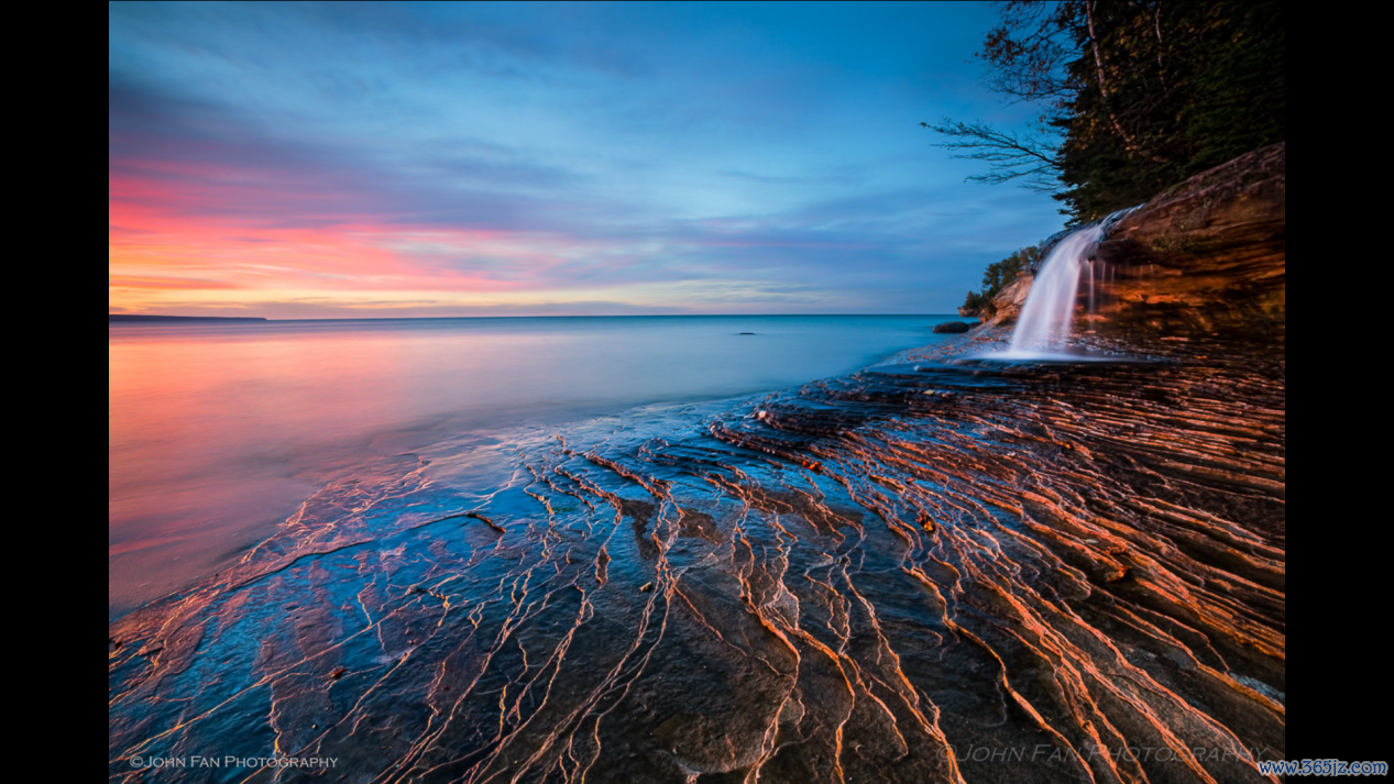 苏必利尔湖碧蓝的湖面烟波浩渺,一望无涯,水浪冲击着礁石哗哗作响。秋天,是苏必利尔湖一年中最漂亮的时候,漫山的红叶穿透连绵不尽的山峦,金黄色的桦树叶在白云间拉出一条条油画般的色线。这种大北方的色块明快透彻,苏必利尔湖的湖光山色让人如醉如痴。